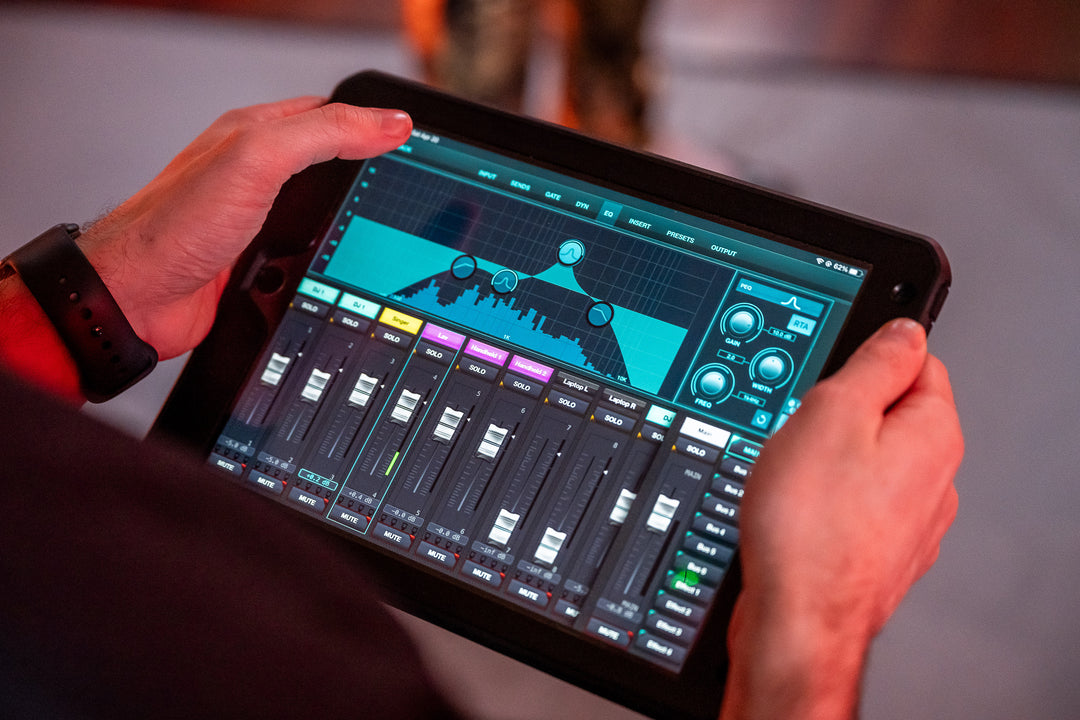 Soundboards or mixers are used to balance and adjust audio levels from various sources then output the mix to the speakers, a livestream, etc.
