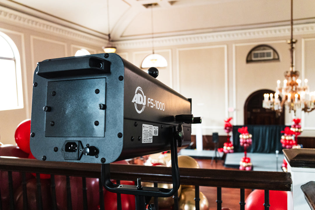 Used to highlight specific areas or features of the event, such as a stage, artwork, or key elements of the décor.